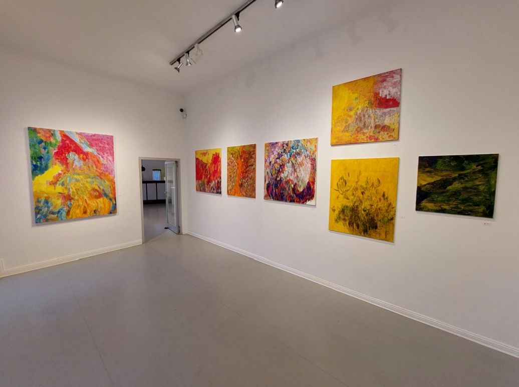 Jana Fischer stellte, „gekennzeichnet durch ihre kurzen, rhythmischen Bewegungen ihrer Handschrift, mittel- und großformatige Werke, Erinnerungsbilder an Landschaften, Stimmungen auch des Lichtes in der Natur, kurz Impressionen vor“.